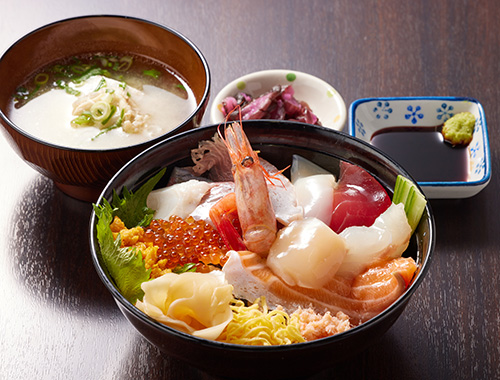 中でもその日水揚げされたばかりの魚介類をふんだんに使った海鮮丼は大人気!!